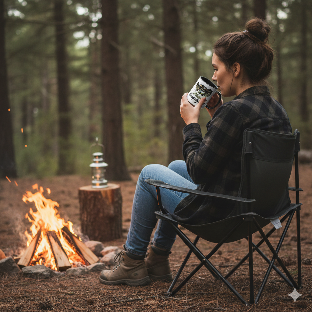 Graphic: Features a unique "Messy Bun Camping Fun" design.